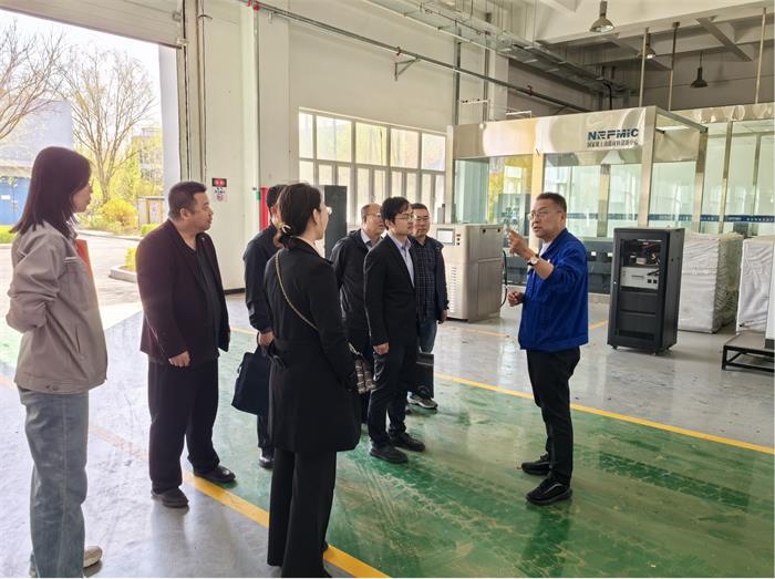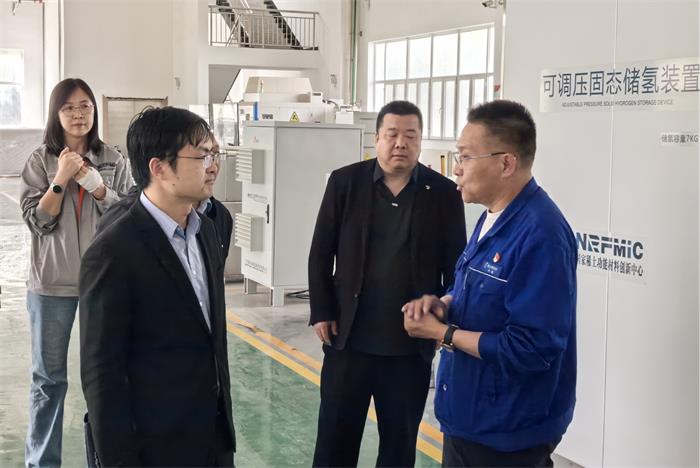 调研期间,刘威详细介绍了中心的整体发展情况、科研创新成果及产业化应用成效。作为国家级创新平台,国创中心始终聚焦稀土功能材料领域的关键技术攻关与成果转化,在推动行业技术进步和产业升级方面发挥了重要作用。目前,国创中心项目组成员在固态储氢系统示范装置基础上,设计开发了低压情况下也能快速响应的规模化氢储能系统,该系统改变了此前固态储氢装置吸放氢动态响应慢、规模化装置设计难度大、装置自动化调控程度低等问题。研制生产出正负压氢气循环系统、可调压固态储氢装置、氢燃料叉车等装置,具有氢气存储量高、存储压力小、安全、高效、智能且可循环利用等特点,适用于工业企业不同环境不同应用场景。
