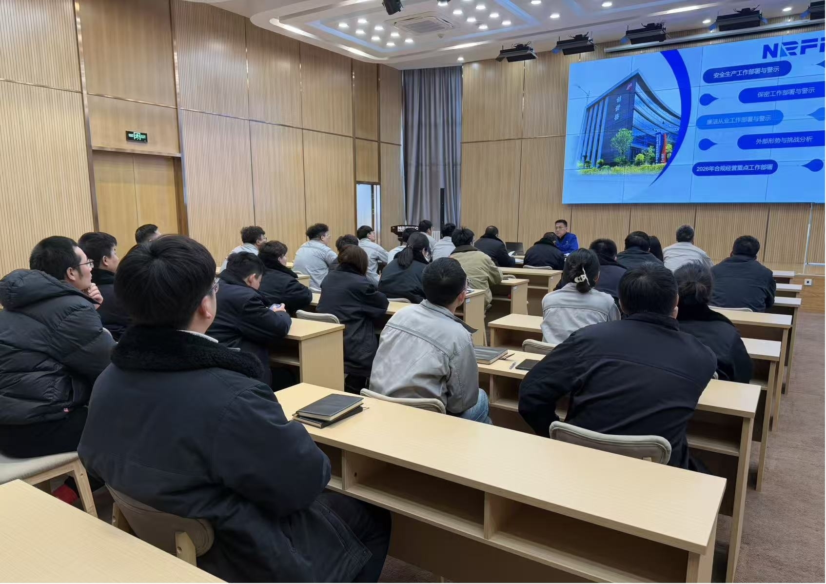 在保密工作方面,刘威指出全体职工必须强化保密意识,在日常对外交流、论文专利发布、文件数据传输等环节严守保密纪律,建立健全保密管理制度,重点加强核心技术、核心工艺、核心文件及涉密人员的保密管理,杜绝任何麻痹思想和侥幸心理。
